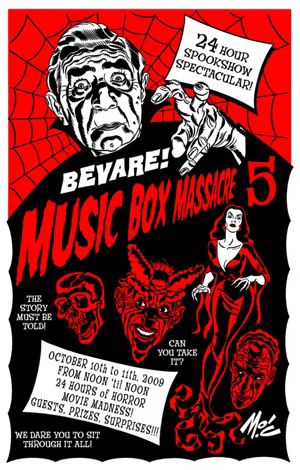 -Nick and Chris wore the same T-shirts during each RDHP screening. The shirts were made by Nick for the 2009 Music Box Massacre, a 24-hour horror movie marathon in Chicago.